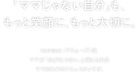 mamuseが目指しているのは、ママが安心して、同じ悩みをもつママや地域・企業とつながれる居場所です。